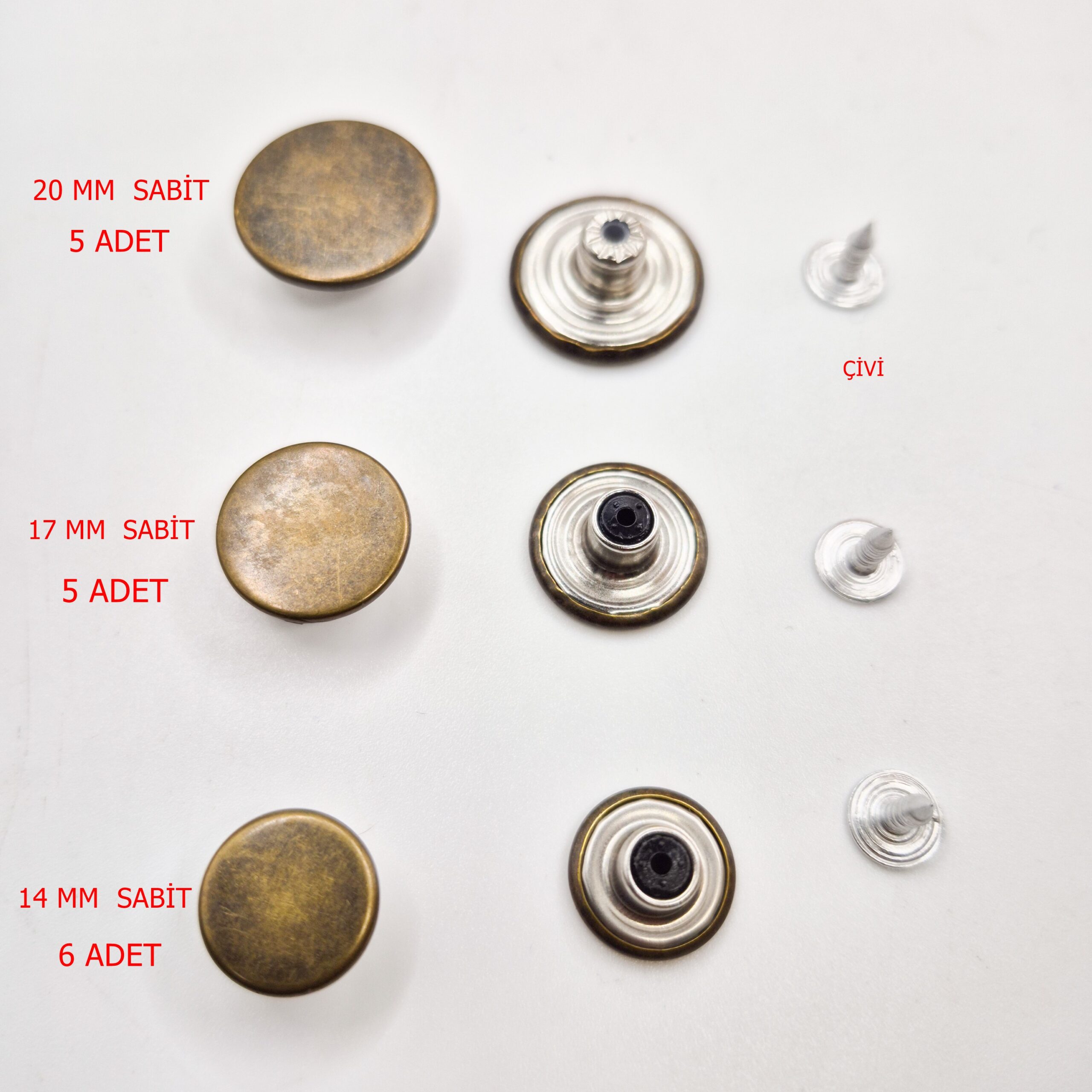 - Pakette 10 adet düğme ve çivisi bulunur.