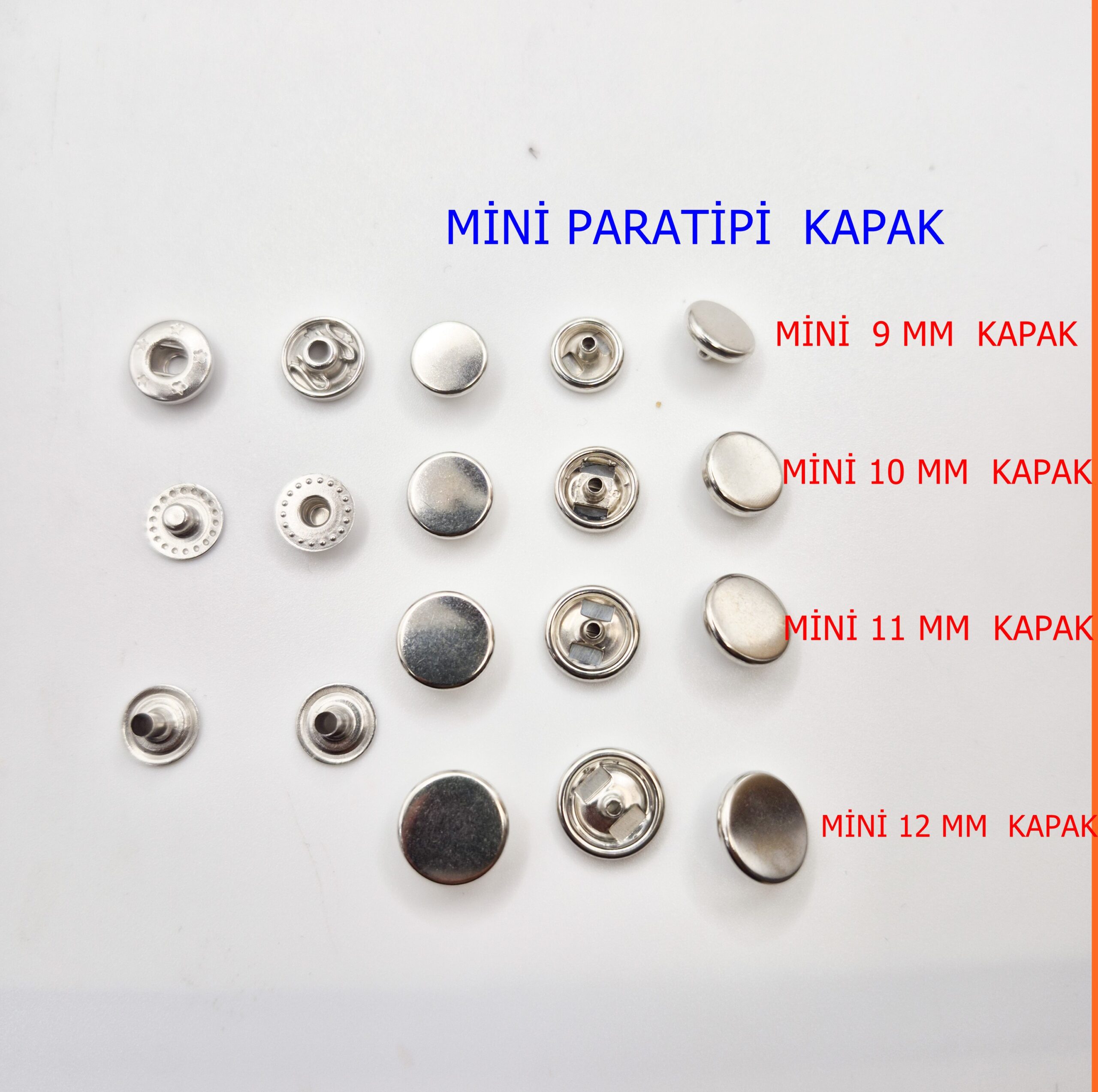 Farklı ölçü ve ebatlarda üretimi yapılan 10mm 54 para tipi ve Bombeli Kapak